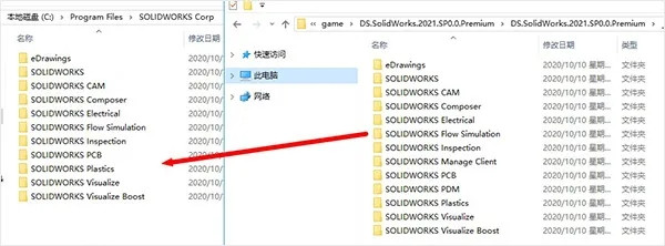 13、接下来将_SolidSQUAD_\Program Files\SOLIDWORKS Corp文件夹中的所有文件全部复制到C:\Program Files\SOLIDWORKS Corp文件夹中,如果提示遇到同名文件直接覆盖。