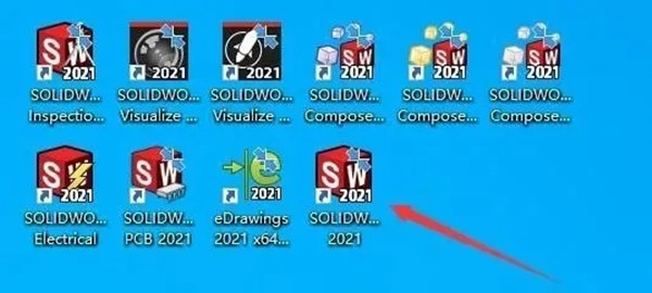 14、双击打开SW2021破解版软件的桌面图标。