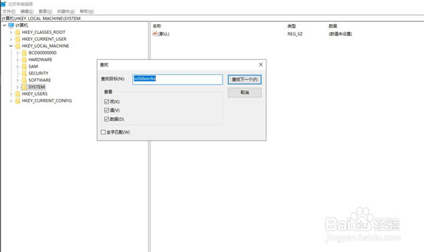 4、这里,对于上面两个目录寻找过以后,再如图所示,在搜索里再次寻找 Solidworks有关的项并删去。