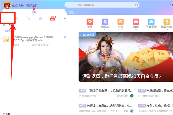 2、打开“迅雷”之后,如图所示,找到“+”,打开。