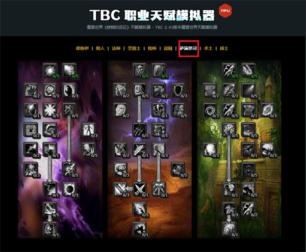 打开TBC天赋模拟器,选择需要加点的职业