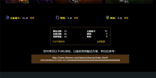 加点完成后可以打印到桌面备份,也可以重置加点方案。您也可以通过保存url的方式保存您的天赋方案
