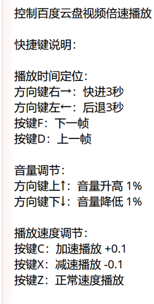 4.4 选择开启即可,成功后再打开网盘视频就可以用c,x来控制播放速度了。