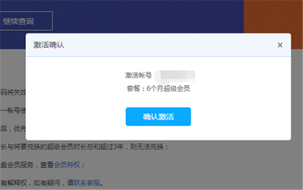 5、查询以后没有问题的话,就可以点击确认激活了,确认之后,就可以看到自己的超级会员时间已经延长了。