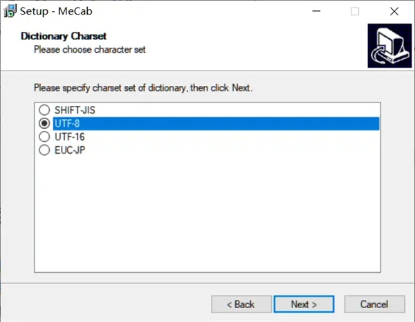 安装 mecab 时,要注意编码方式的选择,我选择的是 UFT-8,若软件开启 mecab 功能后,翻译问题出错的话,可能是编码方式错误,重新安装选择正确的编码方式即可。