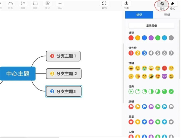 第三步:点击『图标』,可设置情绪、标签、优先级等图标,如下图所示。