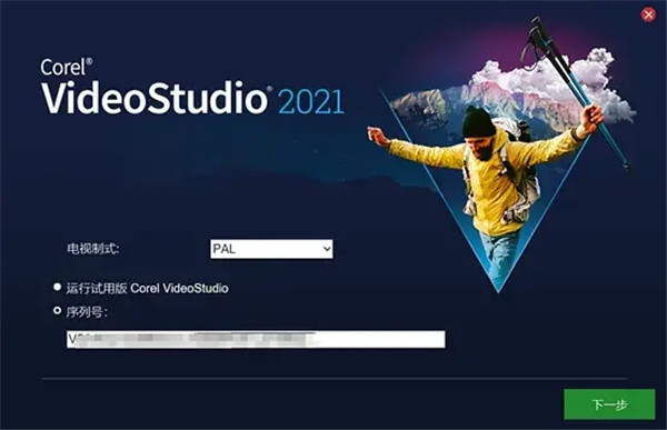 2、进入安装界面后,电视制式默认为PAL,选择序列号,输入邮件里给您发送的序列号后,点击下一步。输入序列号。