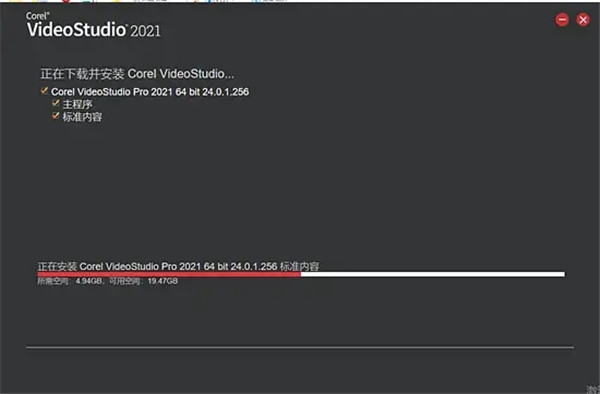 7、按上述步骤操作好后软件就开始安装了。会声会影2021的安装需要一点时间,需要您请耐心等待。安装中。