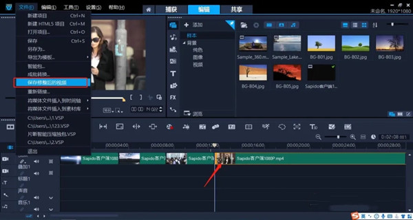 第一种方式,菜单栏“文件>保存修整后的视频”命令