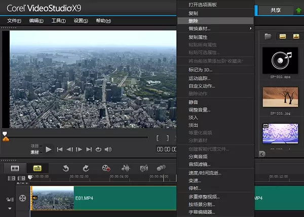 4、我们需要的地方已经剪出来了,那么其余的“边角余料”没用了怎么办?简单,跟电脑操作系统一样,右键,删除,就大功告成了。最后我们还可以利用会声会影剪辑视频的视频拼接功能来把多个剪裁好的“精华”“缝合”在一起,然后进行添加滤镜,转场,铺垫视频效果等等一系列的工作,来完成你的整个视频制作过程。