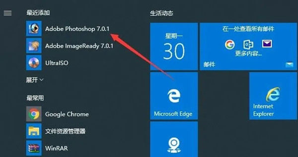 17.在系统开始菜单打开Photoshop 7.0.1软件。