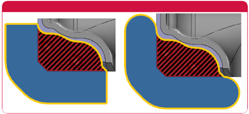 为2D动态铣削,面积铣削或动态铣削刀具路径选择图形时,可以使用新的“自动区域”选择根据所选的图形自动创建“加工”,“空切”或“避让”区域。