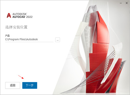 3、双击“AutoCAD_2022.exe”文件运行,将文件夹解压到指定路径,默认为C:\Autodesk;