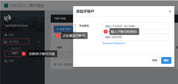 前去后台登录主账号的账号密码:(注意VMLogin后台不要用IE浏览器登录,用其他浏览器登录。)