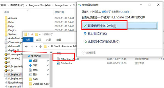 8、选择桌面快捷方式右键-属性-打开文件文件位置,将破解补丁文件下载的“FLEngine_x64.dll”复制到安装目录下载,点击替换目标中文件。