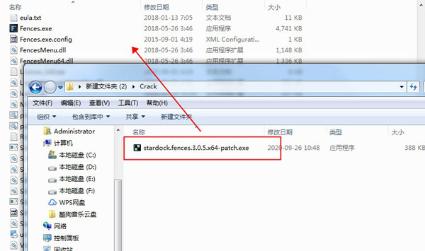 6、将文件夹”Crack”内的”stardock.fences.3.0.5.x64-patch.exe”复制到软件根目录