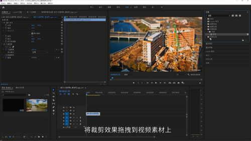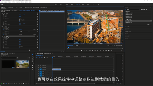 将裁剪效果拖拽到视频素材上,在效果控件中找到“裁剪”。