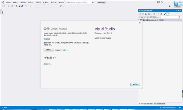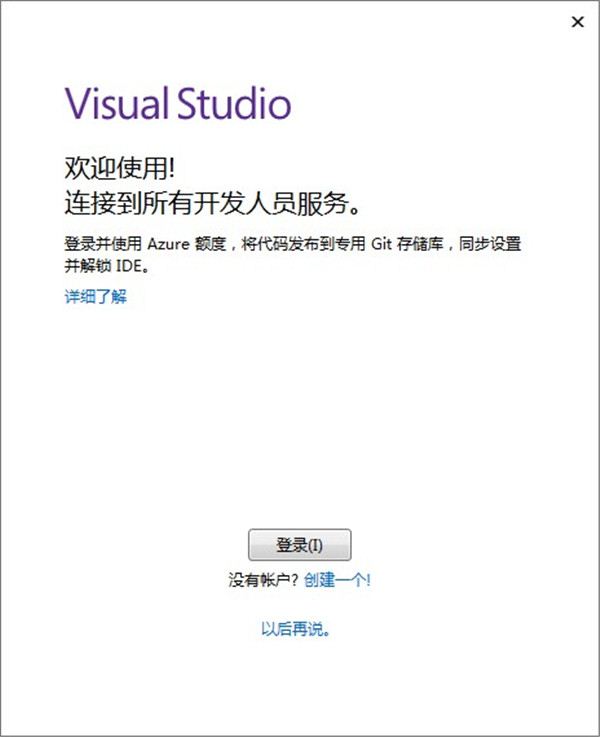 10、打开Visual Studio 2019出现欢迎使用,这里我们直接点击以后再说。