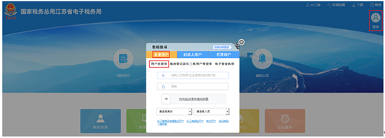 (1)进入电子税务局首页,点击右上角登录,选择企业用户,登录方式为用户名登录,输入纳税人识别号/社会信用代码/用户名、密码。