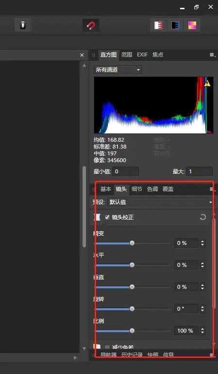 在其他面板上,您可以执行镜头校正和各种锐化和降噪滤镜。