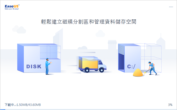 5、EASEUS Partition Master软件正在安装,等待下载进度条满了,这里我们耐心等待一下