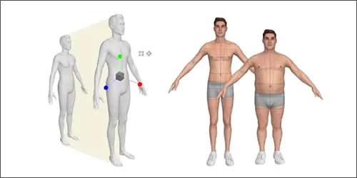 为A/T-Pose虚拟模特自动添加安排点功能将使您更轻松地把服装穿着在虚拟模特上。