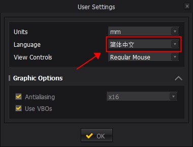 7、完成登录后,接着对软件语言进行设置,设置成为简体中文,然后点击OK。
