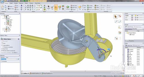 6.spaceclaim的主要命令都集中的Design选项卡中,我们可以使用对应选项卡下的工具,进行快速的模型创建和模型拼接移动等操作。