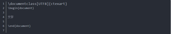 \documentclass[UTF8]{ctexart}\begin{document} 文字 \end{document}