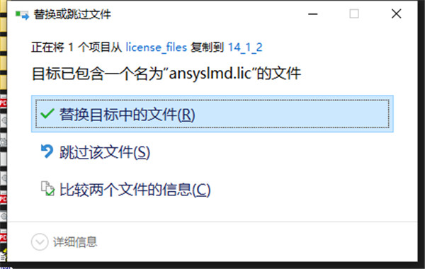 7、在安装结束时取消“许可证配置”,将Shared Files文件夹复制到安装目录中,点击替换目标中的文件