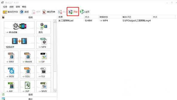 第五步,开始转换。确定了将要转换的文件之后,点击工具栏中的“开始”按钮即开始格式转换