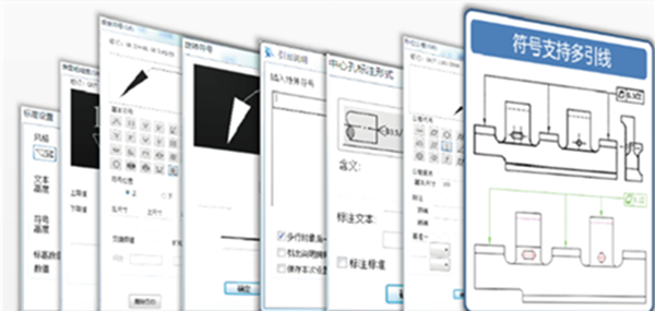 一键智能尺寸标注,自动识别标注对象特征,一个命令完成多种类型的标注;分享符合最新制图标准的多种工程标注功能;尺寸标注时可进行公差和各种符号的查询和输入,相关数值和符号位置都可随图形的变化而自动关联,杜绝人为原因导致的错误。