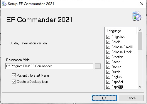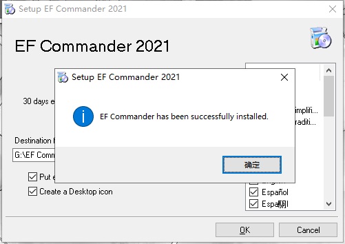 2、点击运行【EF_Commander_2021_64.exe】开始安装原程序,点击设置路径,点击OK即可开始安装