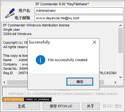 4、运行crack文件夹中的【KeyMaker.exe】,先点击生成再点击保存EFCW.LIC