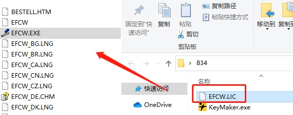 6、在crack文件中会生成一个EFCW.LIC文件,将这个文件复制至程序默认安装路径下