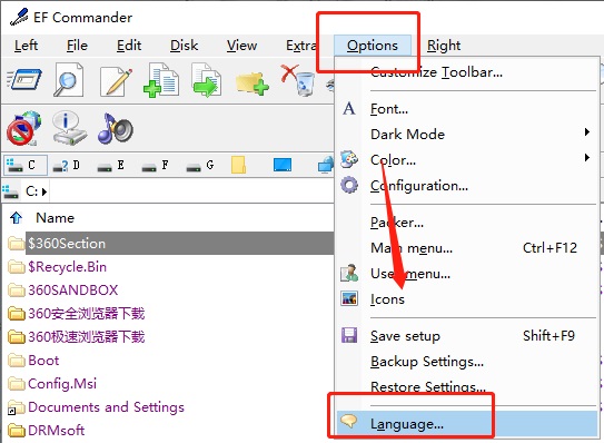 的外部插件支持通过外部插件扩展EFCommander的功能。支持的格式包括WLX,WCX,WFX和Winamp解码插件。