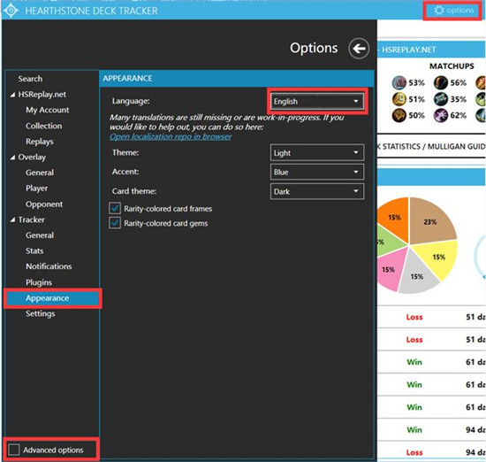 图六:卡牌语言的控制是单独的选项,这里和HDT软件的语言是可以分开的。比如可以设置成HDT软件是中文,但是卡牌是英文。甚至卡牌可以双语显示。