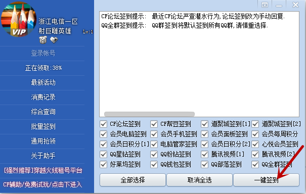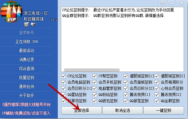 4、批量签到:各种合作平台,cf论坛、QQ会员、QQ钱包等平台意见签到