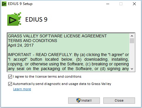 1、等待Edius X破解版下载完成,解压缩并双击exe文件进入安装向导,勾选使用协议然后点击Install