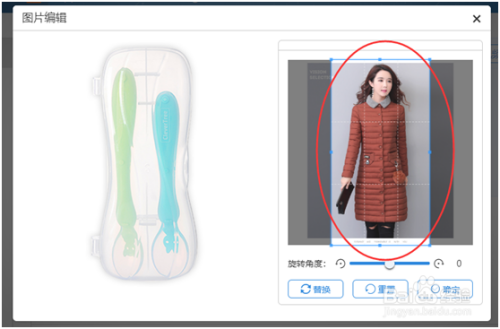 点击修改会出现宝贝的替换图,此时需观察下宝贝的图的展现,是竖向长方形尺寸比例,那就是需要上传竖向比例的图,才能展现全部。