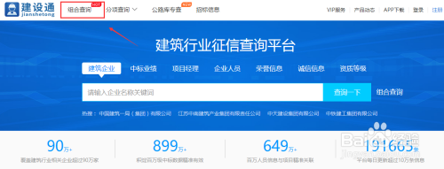 直接用建设通就可以查询到四库的业绩,打开建设通官网,点击顶部【组合查询】
