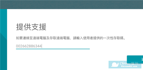 3、请对方打开Chrome远端桌面网站,一样点选「远端支援」功能,在分享支援部分贴上刚才产生的那串数字代码,点选下方「连线」送出。