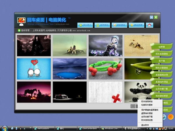 回车桌面管家可以快捷,方便的设置桌面壁纸,除分享平铺,拉伸,居中的设置壁纸模式,更首创自动设置壁纸功能,任何照片图片都可以设置为最合适的桌面壁纸,可设置每天电脑启动,随机自动更换你选择的壁纸,海量的桌面壁纸库供你选择。十万张高清桌面壁纸供选择,每日都更新,每日都推荐网友最喜欢的壁纸,会员可以下载自己在回车桌面收藏的壁纸。保护个人隐私实时隐藏(显示)桌面图标功能,让你的桌面干干净净,保护你的个人隐私。方便快捷的个人上网专用书签设置。