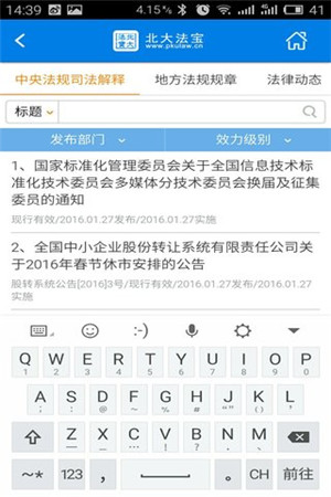 北大法宝法律数据库是一款由北京大学法律系分享的法律查询软件,北大法宝法律检索系统为所有的用户分享了目前国内最为全面的法律相关知识,我们可以通过这款软件来查询到自己想知道的法律知识,并且还可以获取到各种不同的法律、法规、法条。