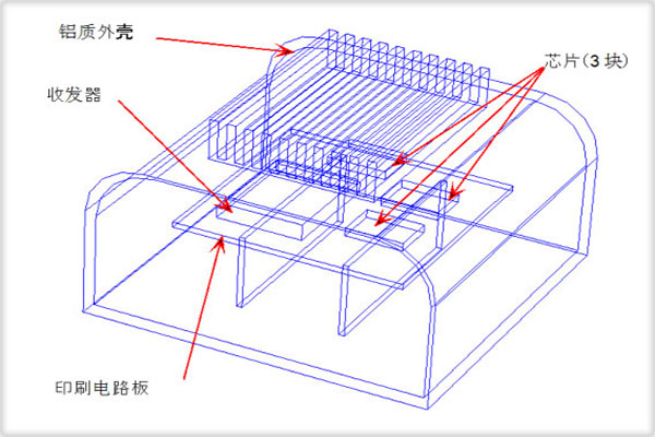 铝质壳体中包含多个发热组件。不使用风扇或其他有源设备来冷却组件。所有传热均由壳体内的浮力流以及与外壳之间的传导产生。