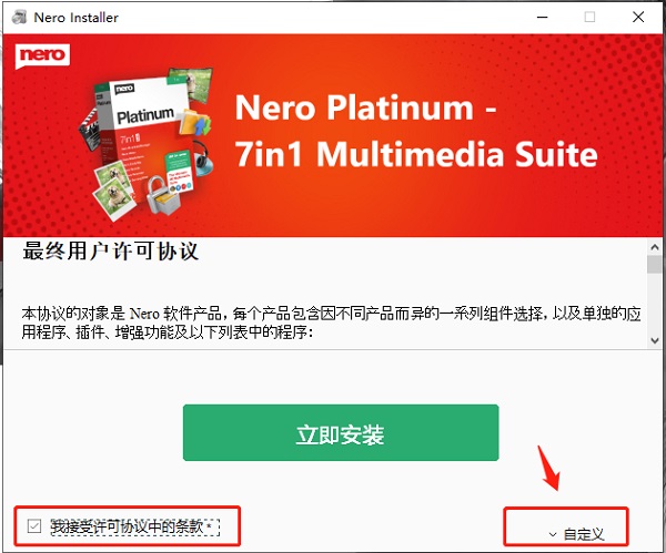 4、勾选同意许可协议,并且点击自定义设置安装路径
