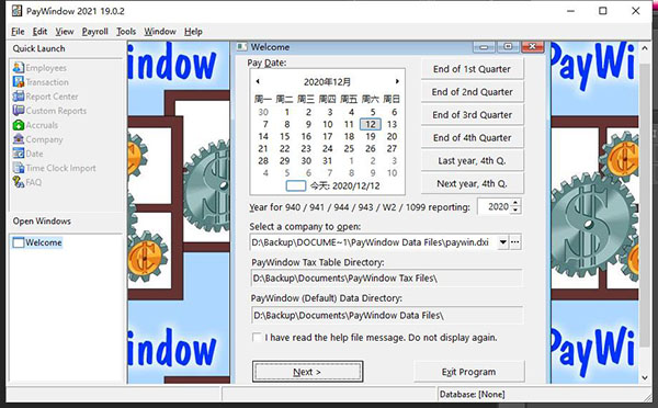 PayWindow 2021是适用于Windows Vista,Windows 7,Windows 8和Windows 10的功能齐全的易于使用的薪资软件包。
