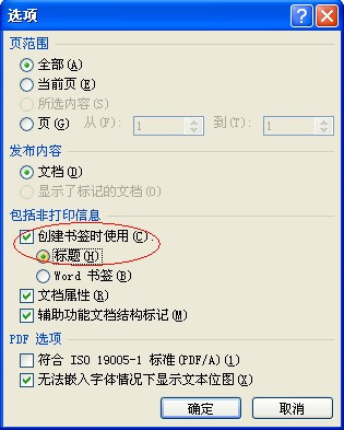 3.提醒一下,如果直接发布保存的话,word的目录标签,在pdf中看不到,到时候阅读pdf比较吃力,其实只要你勾选如下图所示,创建书签额使用即可。
