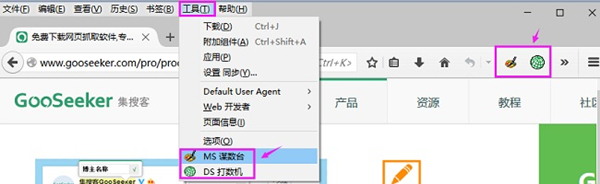 2)火狐插件版请去火狐的工具菜单里打开DS打数机,如下图。如果看不到菜单栏,请参考文章如何显示火狐菜单栏。