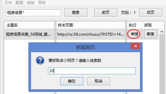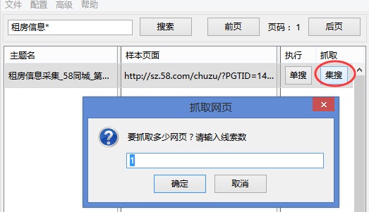 如果一个规则有大量等待抓取的线索,可以利用“集搜”增加一个DS窗口同时采集数据,如图4,方法是:点击“集搜”按钮,输入要抓取的线索数,就会弹出新的DS窗口来抓数据。集搜与单搜都是用来启动抓取任务,区别在于集搜能增加一个新的DS窗口,而单搜不能,详情见单搜与集搜的区别。
